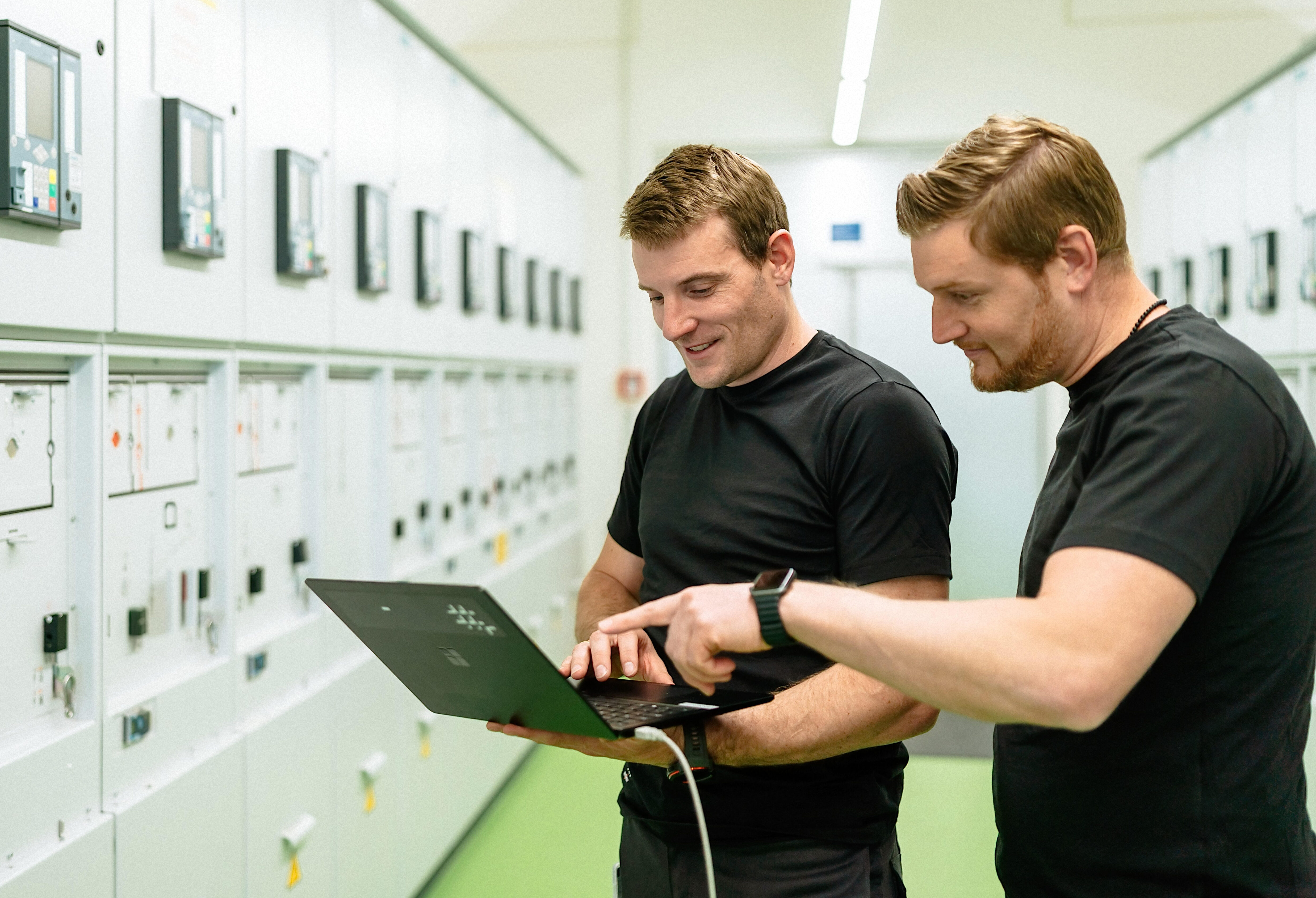 - Mit deinem Laptop programmierst du Steuerungen und elektronische Systeme, damit unsere Energieversorgung reibungslos läuft.